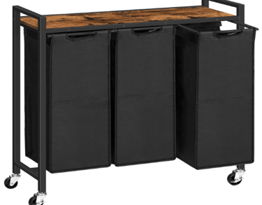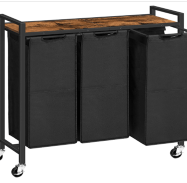 Three-Bag Rolling Sorter: A cart with a durable frame, a tabletop, and three separate bags (like the black and wood-look unit) is a game-changer. The separate compartments let you pre-sort whites, darks, and colors as clothes come off the body. The tabletop provides a handy folding surface, and the wheels mean you can easily move it if you need to access the floor or machine.