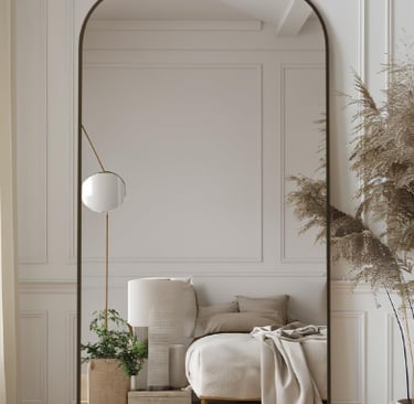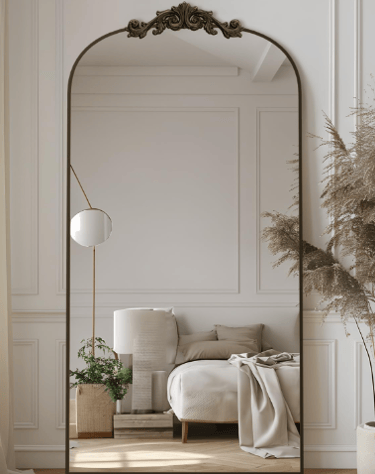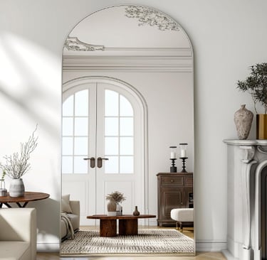 3. They Add a Touch of Style: A mirror with a beautiful frame is a decor piece in itself. Whether it's a sleek, modern arch or a vintage, ornate frame, it adds an architectural element that elevates the room's design.